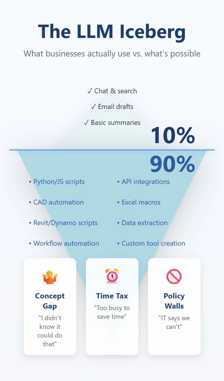 So if the tools are this capable, why are most businesses still tapping <10% of what LLMs can do?